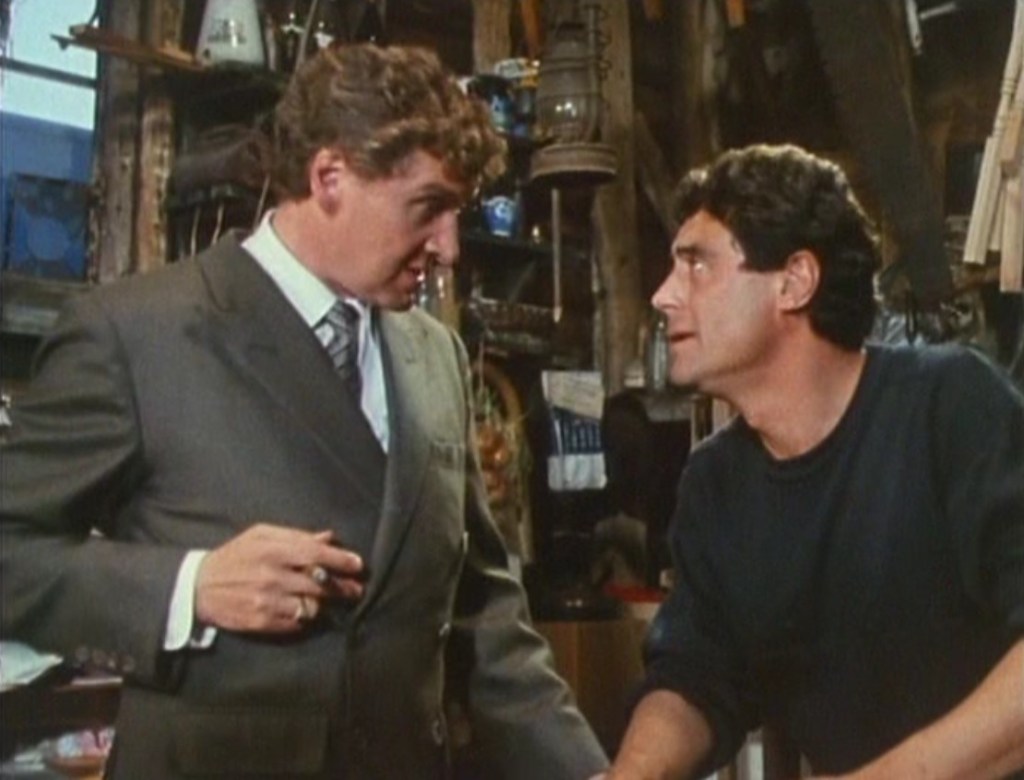 Here, it’s almost like two different stories and styles spliced together which, although enjoyable doesn’t always come off smoothly. The earlier scenes of Lovejoy’s struggles with his car (Miriam) and splashing through chocolate-box villages evoke shows like The Last of the Summer Wine, while the violent action on the water in the final scenes are right out of The Sweeney.